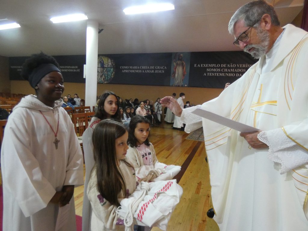 No Domingo de Cristo Rei temos todos os anos a Investidura de Novos Acólitos e a renovação da Promessa de todos os restantes que o desejam. Foram investidas duas meninas do 4º ano da catequese e renovaram os nossos actuais acólitos. Faltaram à cerimónia os quatro acólitos escuteiros, mais dois desportistas e um estudante. Esperamos que estes a façam numa das missas vespertinas do Advento. No final da Eucaristia fizeram a sua Consagração a Nossa Senhora. Graças a Deus!