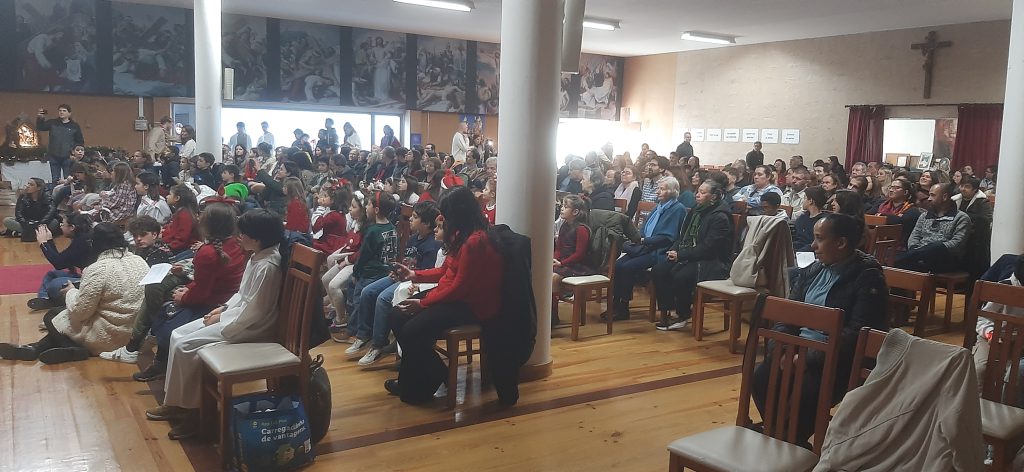 Na tarde de sábado, 13 de Dezembro foi a Festa de Avento/Natal da nossa Paróquia, onde as crianças e jovens da Catequese mais os escuteiros do Agrupamento 1104 foram os protagonistas. Pelas 14 horas já havia muito animação e muita alegria. As pessoas iam chegando e os grupos íam-se agrupando para as suas representações. O espaço diante do belo presépio construido de manhã pelas catequistas ia sendo preenchido com sacos e embrulhos com muitas ofertas e partilha de bens para serem entregues à Conferência Vicentina para ajudar os cabazes de Natal. Pelas 15 começou o espectáculo onde passaram os vários grupos da nossa Catequese e as várias secções do nosso Agrupamento. Os apresentadores, o Zé Moreira e a Andreia estiveram de parabéns pois fizeram um trabalho de excelência. O programa terminou pelas 17 h e depois seguiu-se um lanche no Centro de Convívio. Parabéns a todos os participantes.