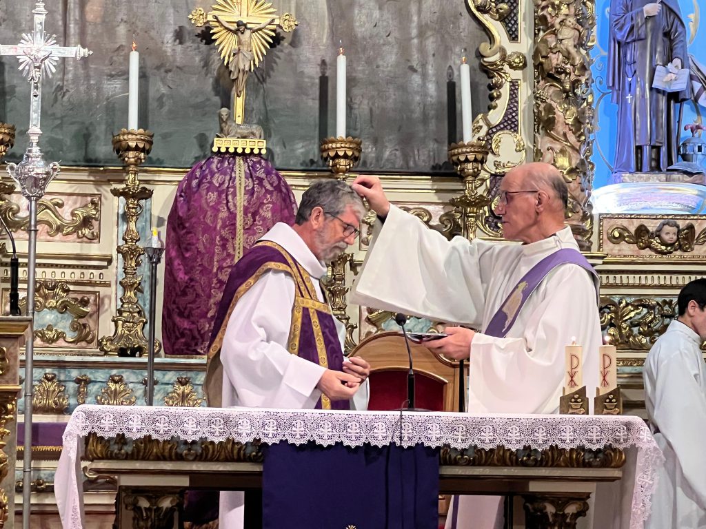 A nossa Eucaristia dominical do 1º Domingo da Quaresma, na Cripta foi enriquecida com a imposição das cinzas às crianças e adultos que as não receberam na Quarta-feira. Esta celebração para a catequese costuma ser no Sábado, mas dado que não houve catequese em virtude do Encontro Vicarial nos Salesianos passámos para domingo. Foi muito bom. Esperamos que todos apreendam bem o sentido.