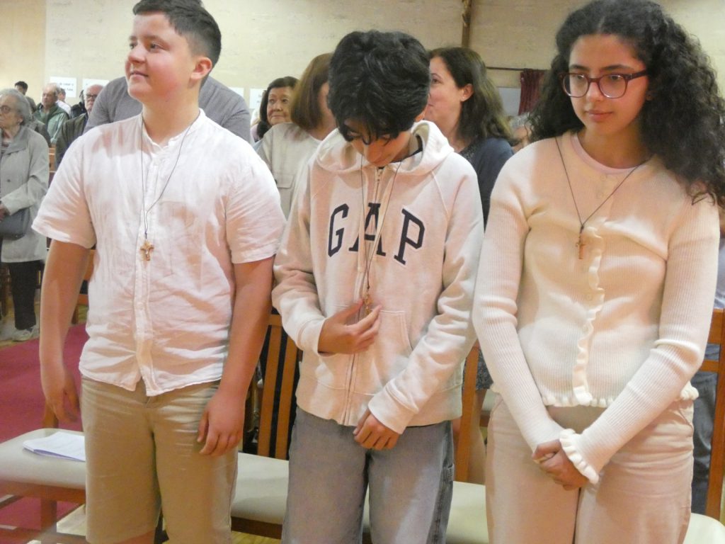 Neste domingo 26 de Abril tivemos a primeira festa da Catequese: a Festa da Vida, o grupo da catequista Ana Paula. Foi com muita alegria e sentido de dever que os três adolescentes receberam a cruz, sinal da vitória e da salvação. Claro que os outros elementos do grupo não puderam vir à festa!